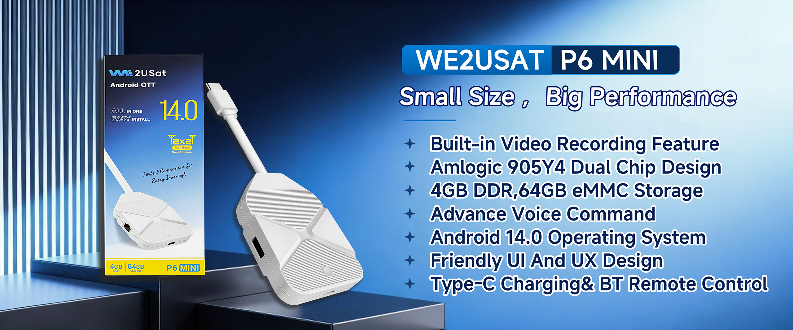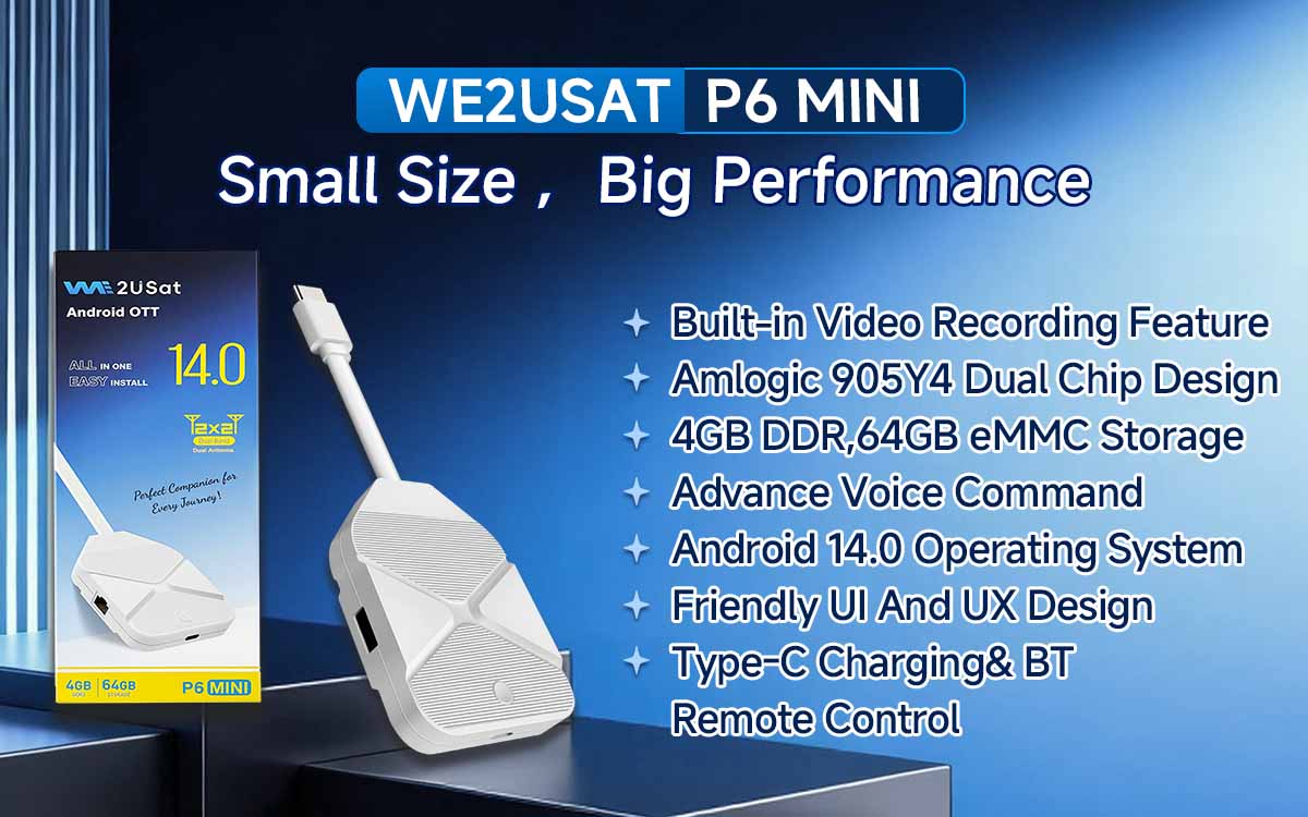The WE2USAT P6 Mini Android 14 IPTV box supports 8K HDR. Smaller and more convenient, it features an upgraded detachable USB-C port to meet your entertainment needs anytime.