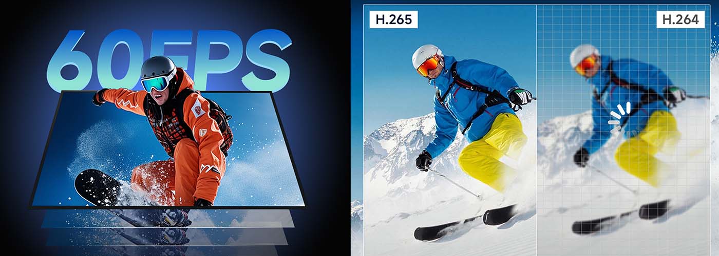The K3 Pro+ utilizes H.265 decoding technology, which can save approximately 50% bandwidth and storage compared to H.264 while maintaining lossless picture quality. Combined with an HDMI 2.1 interface, it supports stable output of 6K@60FPS high-definition video, delivering a visual experience free of motion blur, with exceptional smoothness and realism
