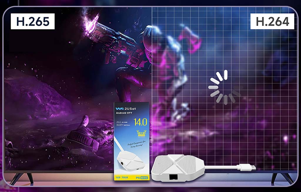 We2usat P6 Mini, Small Size, Big Performance. Amlogic 905Y4 dual-chip, 4GB of RAM, and 64GB of storage, it delivers smooth and responsive operation. Android 14.0 and independent Mali-G31 MP2 GPU, it effortlessly outputs fluent 8K ultra-high-definition video,offering crisp and immersive viewing experiences.Built-in video recording function, you’ II never miss a memorable moment.Equipped with dual-band Wi-Fi 2.4/5G and Wi-Fi 6 technology, it provides lightning-fast streaming and smooth playback. The upgraded Bluetooth voice remote allows for precise control with just a word, making your smart entertainment effortless and intuitive.